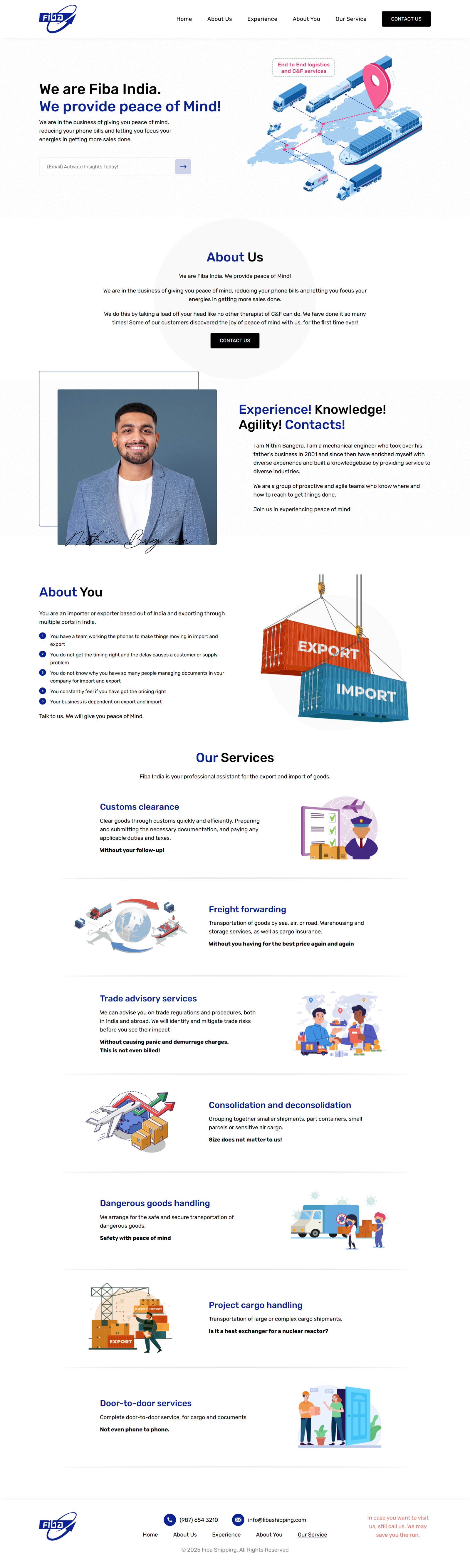 Simple one-page website for an Export and Import services provider, which client uses as their extended business card or say brochure.