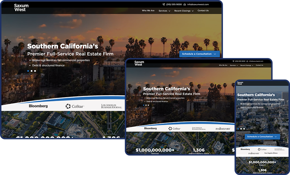 Premium look and feel for website were the two major challenges and requirements of this Southern California’s based Real Estate firm who are into Brokerage services for commercial properties and Debt & structured finance services.